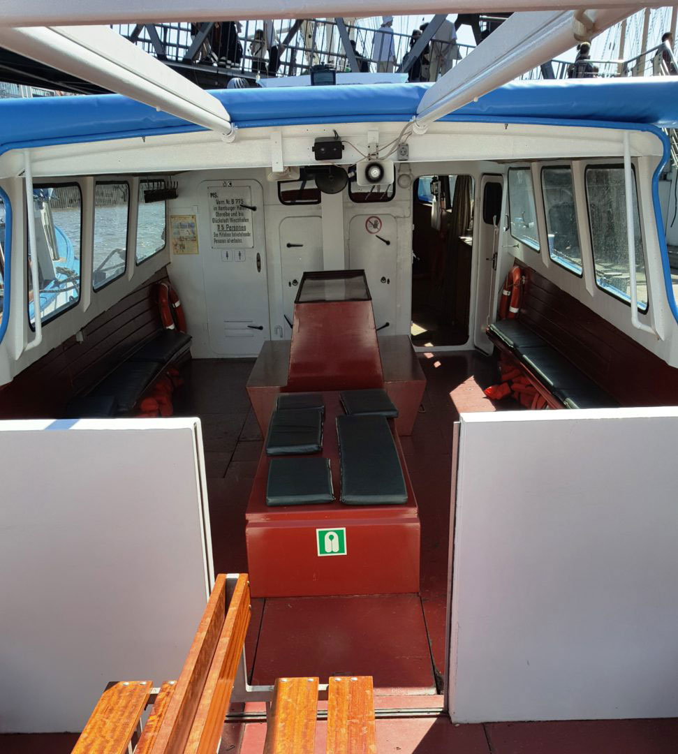 Urig und gemütlich können bis zu 50 Personen nicht nur den pulsierenden Hamburger Hafen genießen, sondern auch in geselliger Runde mit kleinen Snacks und gepflegten Getränken zünftig feiern.