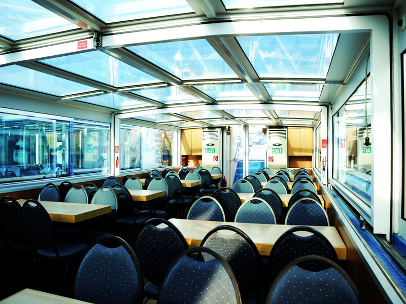 Keine Sorge, die nach den neuesten Kriterien der Sinksicherkeit gebauten Barkassen aus der Abicht-Familie schützen ihre bis zu 60 Passagiere mit einem (Color-) Glasschiebedach und versenkbaren Seitenfenstern vor unangenehmer Nässe und sonstigen Witterungseinflüssen. Klimaanlage, Fußboden- oder Zentralheizung regeln die Temperatur an Bord. Auf Wunsch können Gäste ihre Fahrt unter freiem Himmel genießen.
