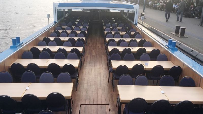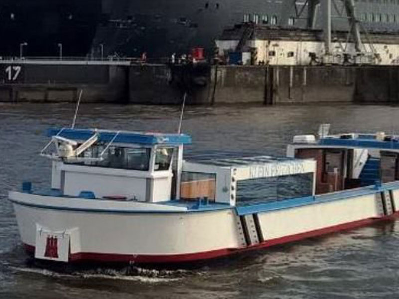 Auch bei diesem neuen Schiffstyp werden wir den hohen Ansprüchen genügen – modernste Ausstattung mit Edelstahl und Glas. Dieses Fahrzeug ist extra lang und flach konzipiert, sodass bei entsprechender Tide auch eine Fahrt zur historischen Speicherstadt möglich ist. Im vollverglasten Innenraum finden bis zu 160 Personen an Tischen mit bequemen Polsterstühlen Platz. Mit einem Büffet an Bord ist der Platz für 120 Personen ausgelegt.