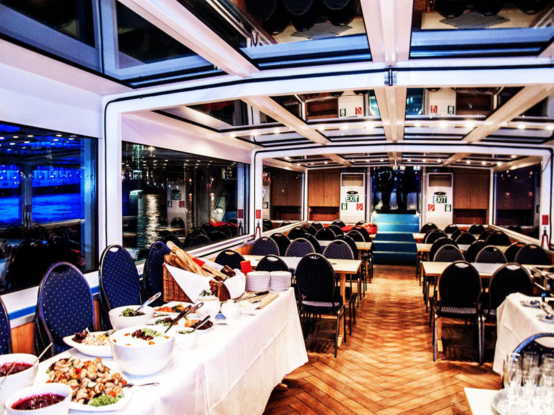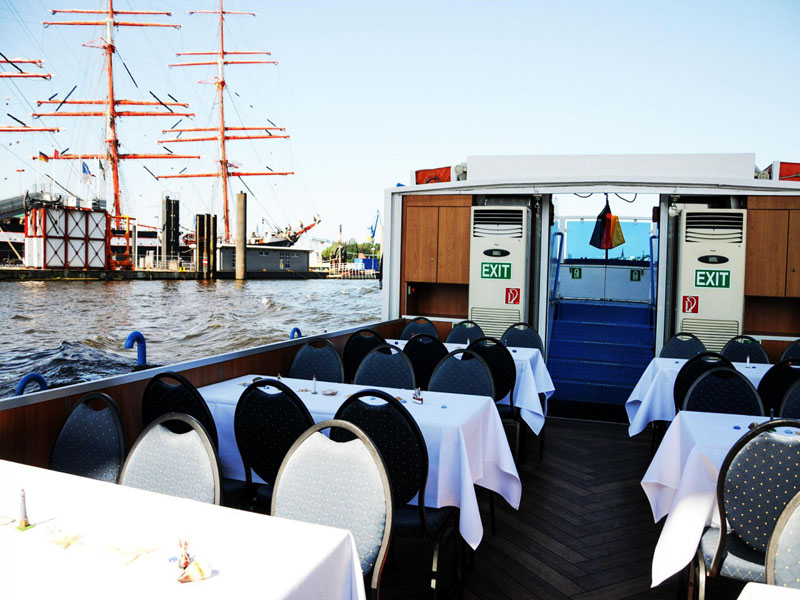 Keine Sorge, die nach den neuesten Kriterien der Sinksicherkeit gebauten Barkassen aus der Abicht-Familie schützen ihre bis zu 60 Passagiere mit einem (Color-) Glasschiebedach und versenkbaren Seitenfenstern vor unangenehmer Nässe und sonstigen Witterungseinflüssen. Klimaanlage, Fußboden- oder Zentralheizung regeln die Temperatur an Bord. Auf Wunsch können Gäste ihre Fahrt unter freiem Himmel genießen.