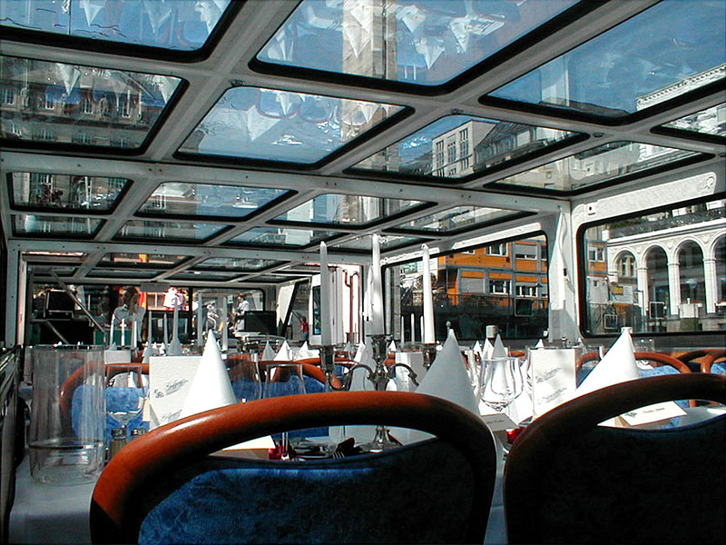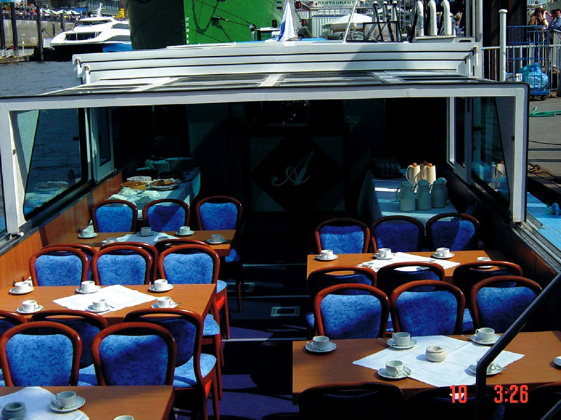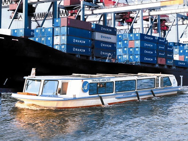 Keine Sorge, die nach den neuesten Kriterien der Sinksicherkeit gebauten Barkassen aus der Abicht-Familie schützen ihre bis zu 60 Passagiere mit einem (Color-) Glasschiebedach und versenkbaren Seitenfenstern vor unangenehmer Nässe und sonstigen Witterungseinflüssen. Klimaanlage, Fußboden- oder Zentralheizung regeln die Temperatur an Bord. Auf Wunsch können Gäste ihre Fahrt unter freiem Himmel genießen.